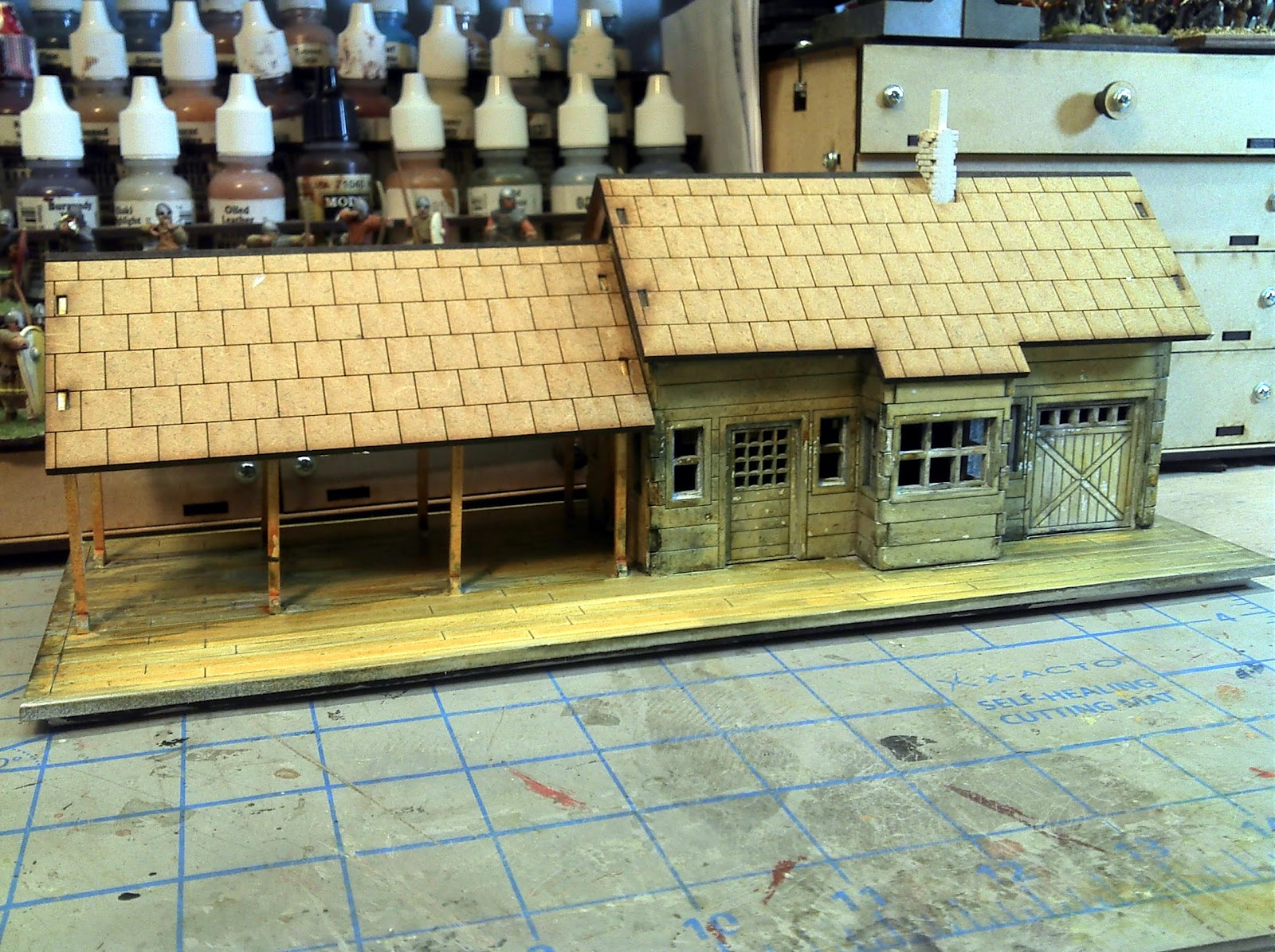 I'm going to finish this building. I think I'm going to chalk this up as a test piece and consider replacing it. Of the five manufacturers: Battle Flag, Knuckleduster/Tri-City laser, Aetherworks, Gamecraft Miniatures and Sarissa Precision, Sarissa is the only one that makes a railroad station. I may replace this one with a scratchbuilt station as that would make me happier about some of the inaccuracies in the structure itself. Not that the gaming group is going to notice those details but I do. I would definitely salvage the platform if I go the scratchbuilt route.